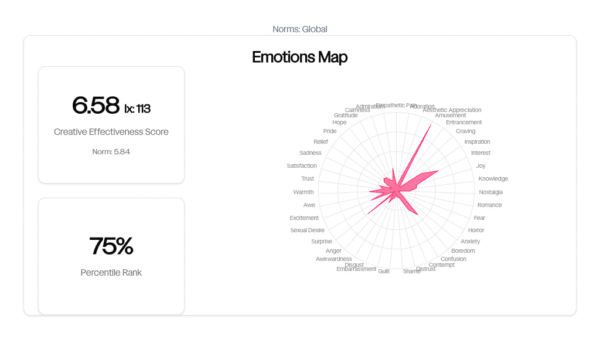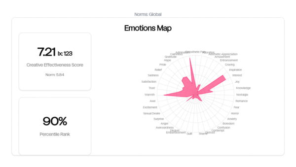 Just to recap, each week we are using our AI-powered creative testing platform to find the ads that are delivering creative effectiveness. Our AI models are trained to identify ads that not only deliver positive emotional engagement, but also attract high scores for attention, brand recall and inspire action.